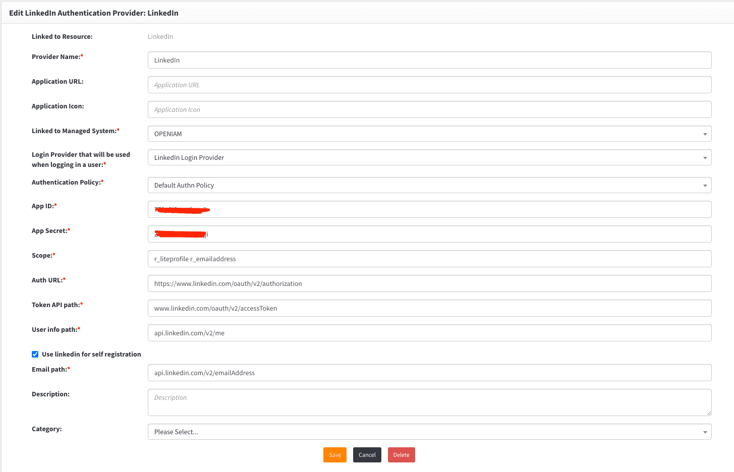 Each user who might want to login via LinkedIn should have an identity of managed system that is selected on Auth provider page. In our example it is OpenIAM Managed system.