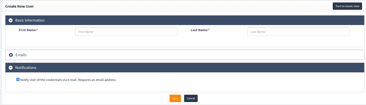 The classic view allows administrators to enter a predefined Login ID. This field is optional and if left blank, the system will generate a login ID automatically.