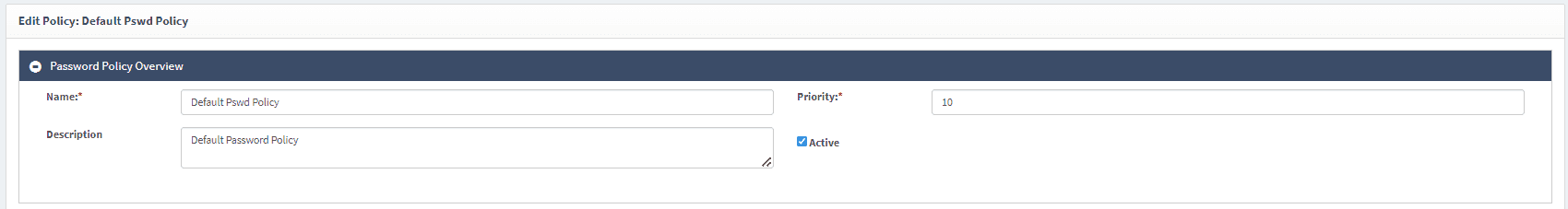 - There are several password policies in OpenIAM: The Default Password Policy with a priority of 10; CustomPolicy1 with a priority of 14 (more restricted than the default password policy); _AD Password Policy_with a priority of 15.