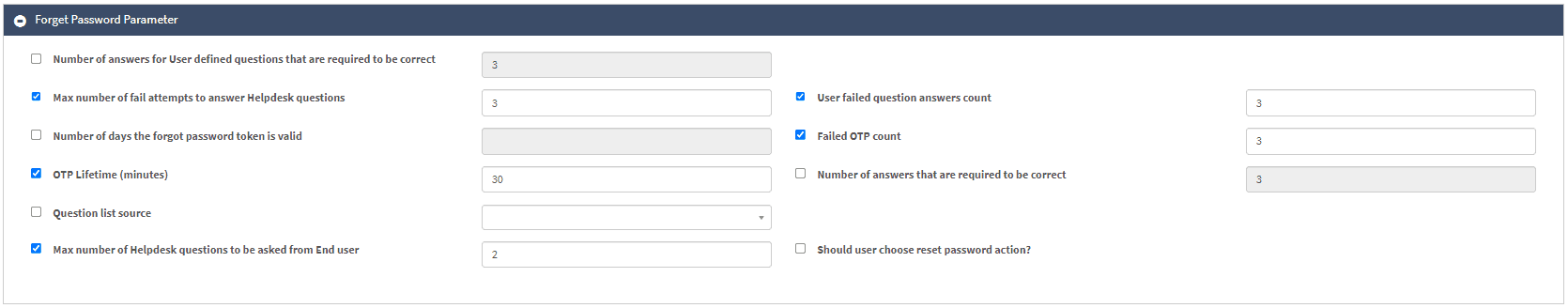 | Max Number of Fail Attempts to Answer Helpdesk Questions | See Helpdesk protection for more information. |