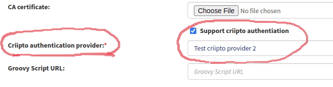 1. Set the checkbox and the Criipto authentication provider field on the used authentication provider page.