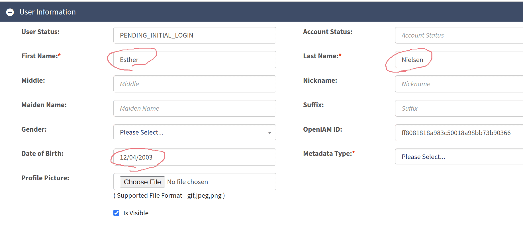 User data saved in OpenIAM: