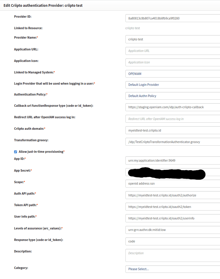 1. Create a new authentication provider with the Criipto authentication provider type via the OpenIAM web console.