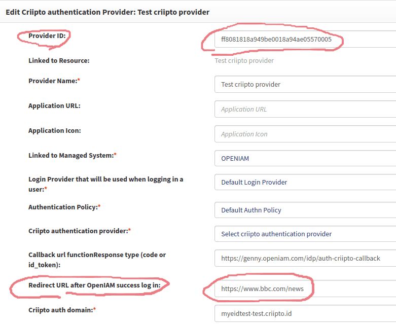 If you need several different redirect URLs, you can create several Criipto authentication providers with equal domains, secrets, etc., but with different “Provider ID” and “Redirect URL after OpenIAM success log in”.
