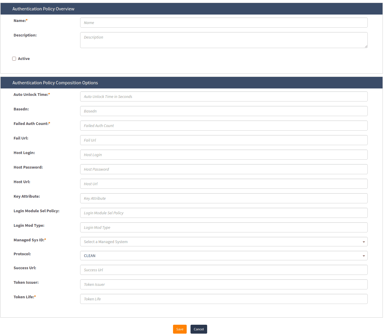 By default, there are two authentication policies in OpenIAM. However, the uses can easily create a customized one as needed. To create a new authentication policy:
