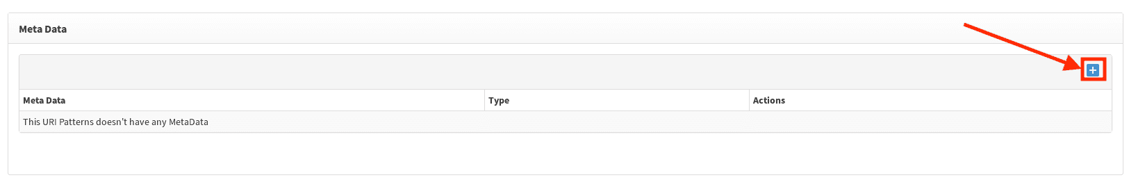 • On URI Pattern screen, scroll down to Meta Data and click on plus button.