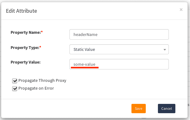 • Optionally you can uncheck Propagate on Error. If this value is unchecked, headers will be added to successful responses only. If checked, headers also will be added to responses with all HTTP statuses. For example, to responses with HTTP status of 404, 500 or any others.