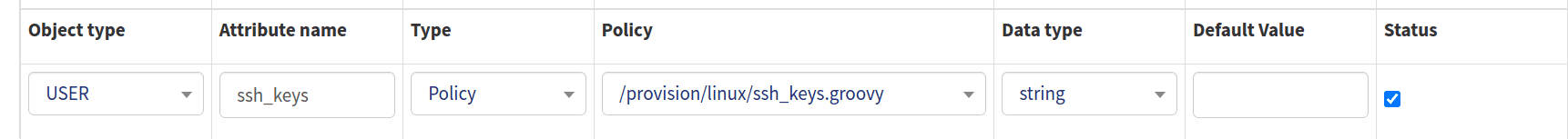 Add new field to policy map : ssh_keys - with default groovy script - /provision/linux/ssh_keys.groovy