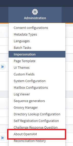 Knowing your version of OpenIAM can be crucial in many cases. First and foremost, this version is needed when troubleshooting issues arising with the platform. This information can typically be found on the About OpenIAM page in the web console's Administration menu. However, the page might be disabled.