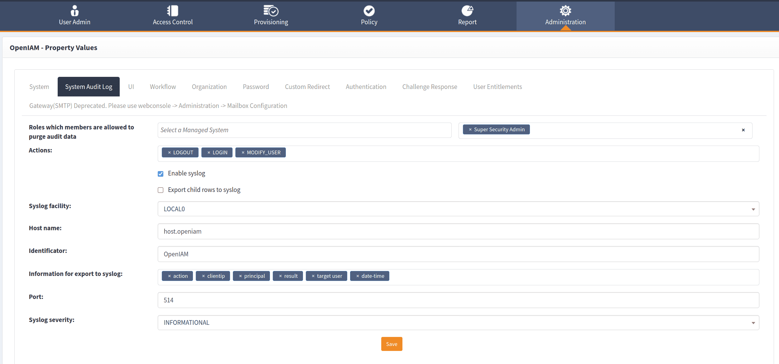 Below, you can find detailed guidelines on how to set up syslog and use it to export audit events from OpenIAM.