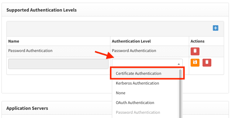 Navigate to the the current Authentication Provider, and enable Certificate Based Authentication, as shown in figures below.