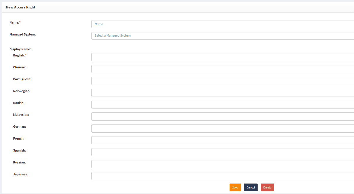 Pick the name for a new access right and select a managed system to link it with and click Save.