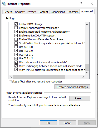 Then click on Advance and check “Enable Integrated Windows Authentication*”.