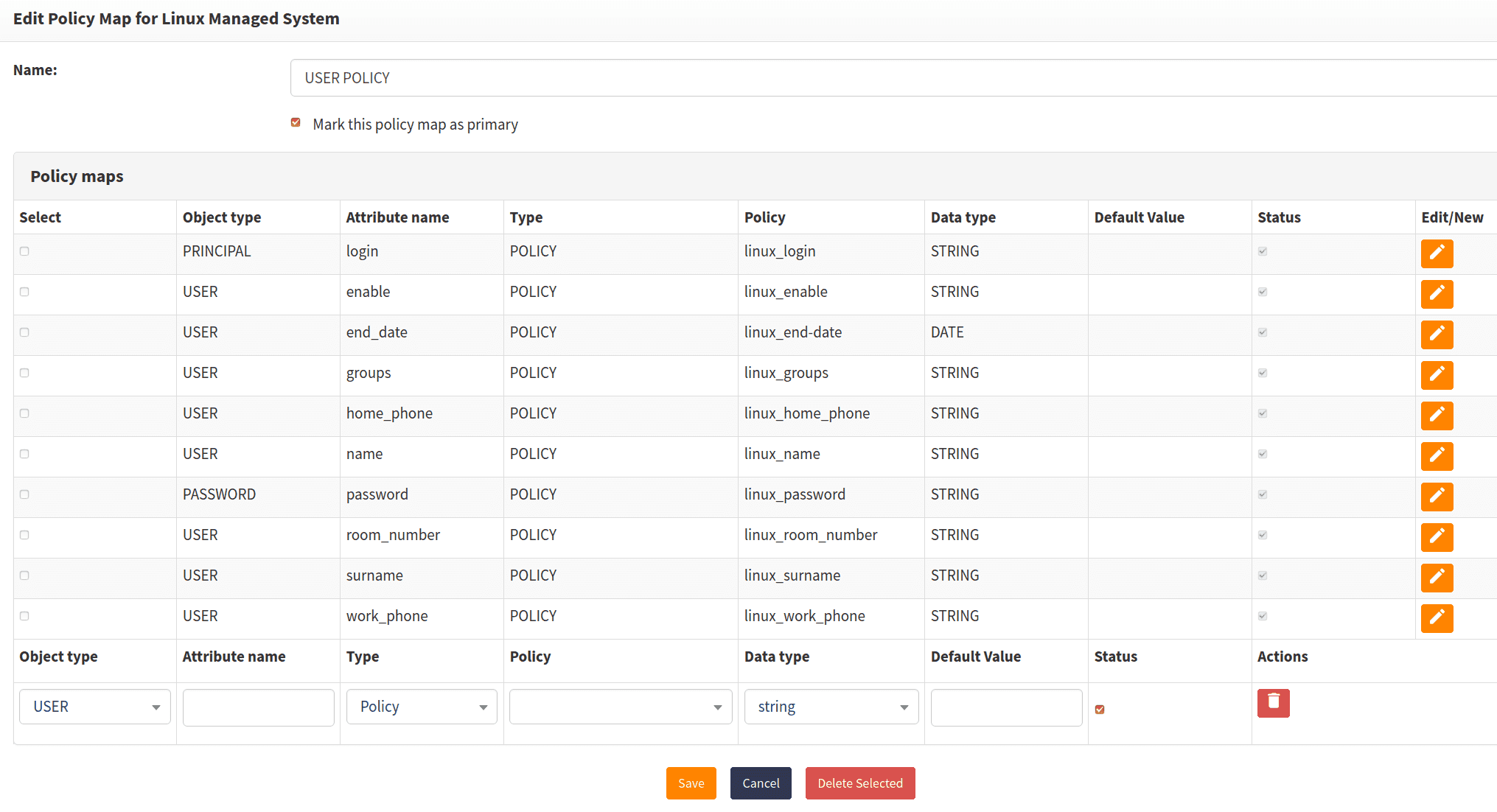 | Password Policy | Default Pswd Policy | Set password policy (example “Default Pswd Policy“) |
