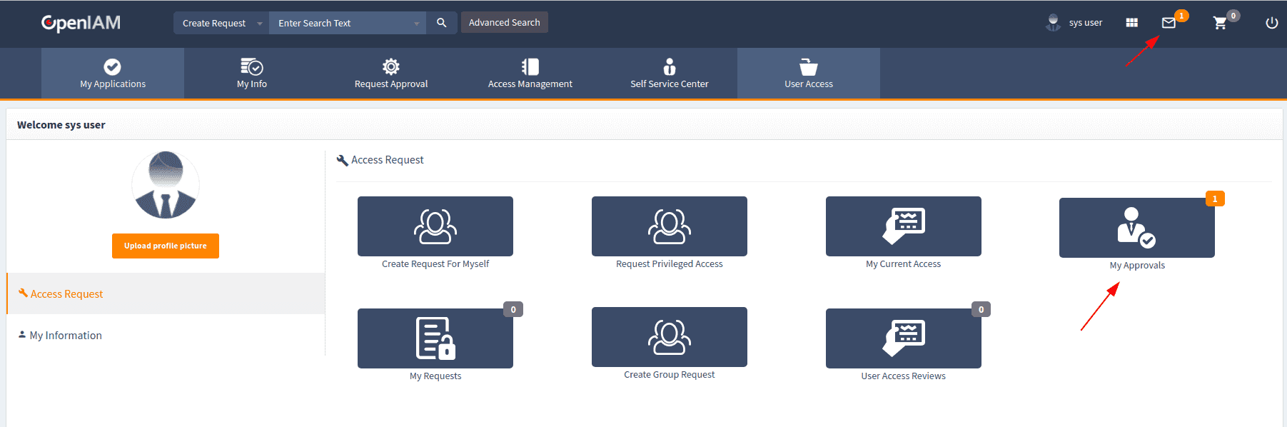 - After logging into the Self-Service Portal, the approver can see if there are entitlement requests awaiting a response based on numerals affixed to the