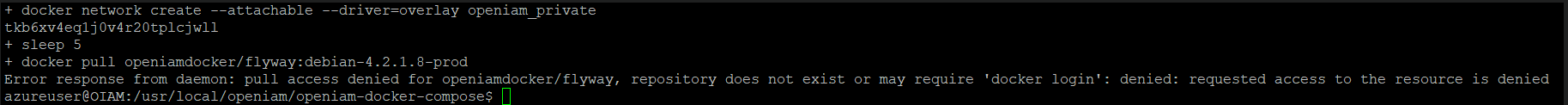 root@localhost:/usr/local/openiam/openiam-docker-compose# ./startup.shSQL Files existUsing MariaDB as the database type...Nothing found in stack: flywayetcd_storagevault_server_storagevault_client_storageconnector_data_storagefilebeat-storageopeniam-janusgraph-storageupload_storageUnable to find image 'busybox:latest' locallylatest: Pulling from library/busybox9ad63333ebc9: Pull completeDigest: sha256:6d9ac9237a84afe1516540f40a0fafdc86859b2141954b4d643af7066d598b74Status: Downloaded newer image for busybox:latestCreating service etcd_etcdCreating service vault_vaultCreating service vault-bootstrap_vault_bootstrapCreating service curator_curatorCreating service openiam-elasticsearch-storage_serviceCreating service openiam-jks-storage_serviceCreating service openiam-activiti-storage_serviceCreating service openiam-rabbitmq-storage_serviceCreating service openiam-iamscripts-storage_serviceCreating service redis_serviceCreating service elasticsearch_serviceCreating service cassandra_cassandraWaiting for cassandra to become running, so that we can bring up janusgraphCreating service janusgraph_serviceCreating service rabbitmq_serviceopeniam-mysql-storage_storageCreating service database_databaseCreating service flyway_flywayCreating service openiam_device-managerCreating service openiam_auth-managerCreating service openiam_groovy_managerCreating service openiam_reconciliationCreating service openiam_email-managerCreating service openiam_synchronizationCreating service openiam_business-rules-managerCreating service openiam_idmCreating service openiam_esbCreating service openiam_workflowCreating service ui_uiCreating service ldap-connector_serviceCreating service rproxy_rproxy