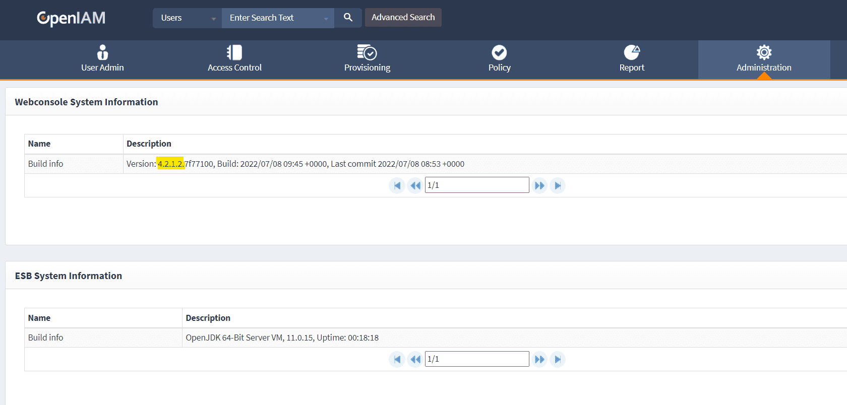 Before starting an upgrade, make sure your current build is 4.2.1.2. To that, got to Administration -> About OpenIAM and verify the build configuration.