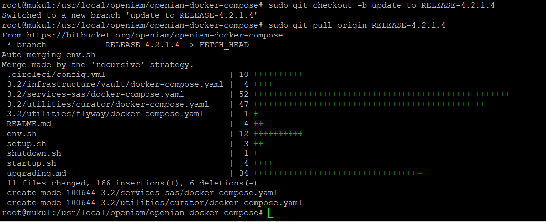 sudo git checkout -b update_to_RELEASE-4.2.1.4sudo git pull origin RELEASE-4.2.1.4