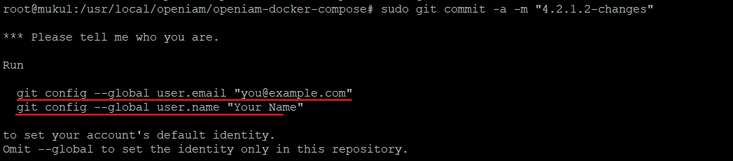 Note: If you encounter 'please tell me who you are' issue use the highlighted commands to setup your email and username.