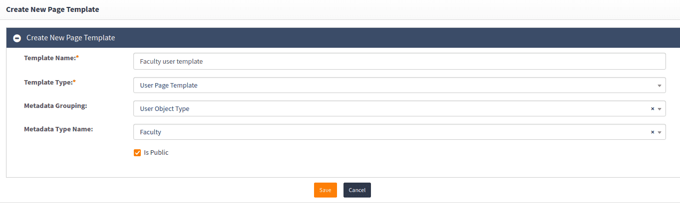 - You will now begin creating your custom user template. For this example, you will design a template to capture fields for faculty at a university. Please take note of the following fields: