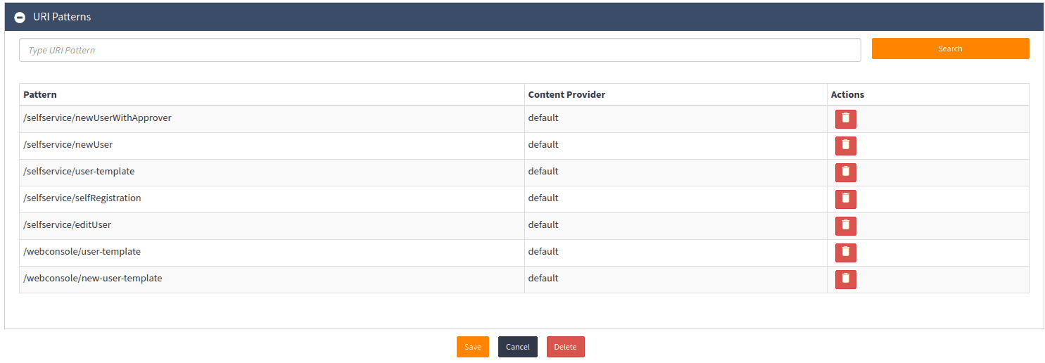 Begin by typing in the name of the URI pattern into the text field and click Search on the right-hand side. Next, choose the URI you wish to add the user template to.