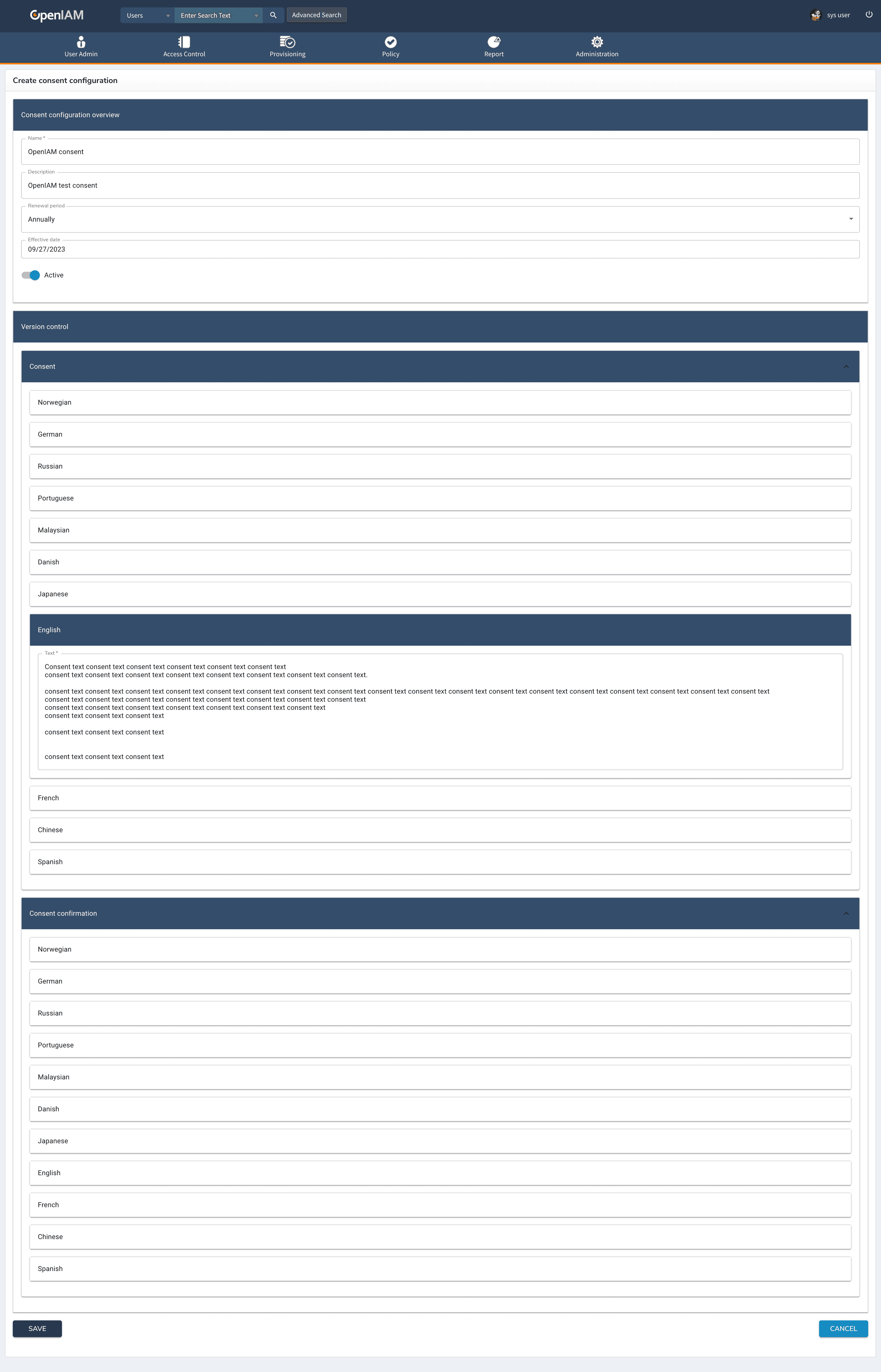 Configuring consent in OpenIAM