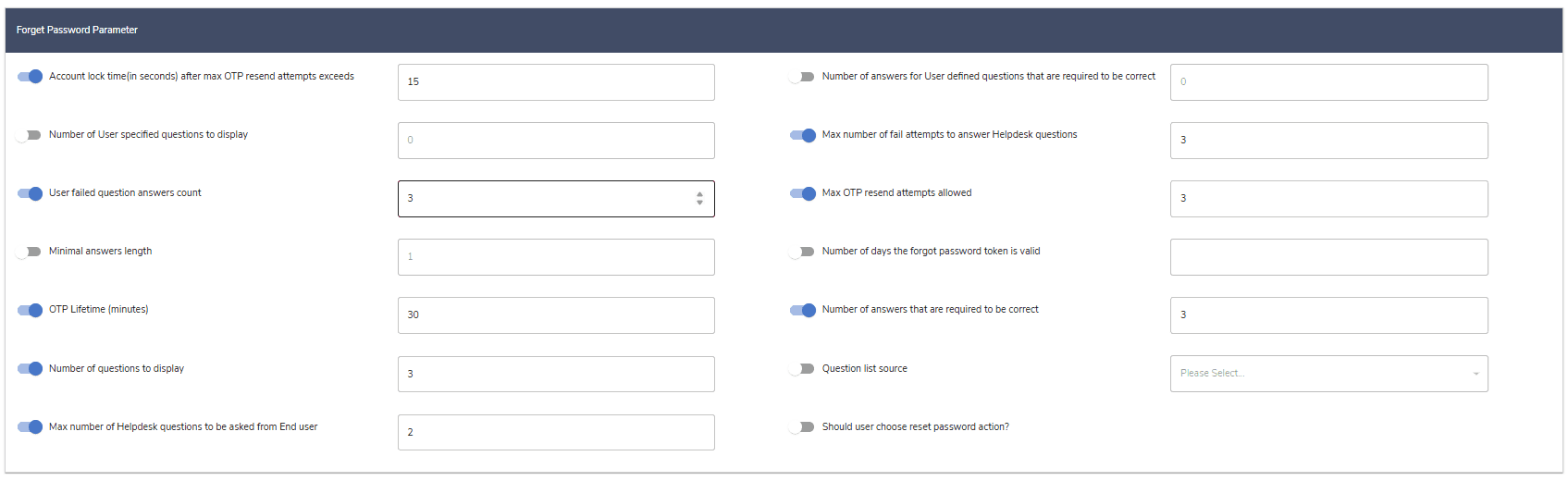 | Question list source | The source of security questions is taken from. |