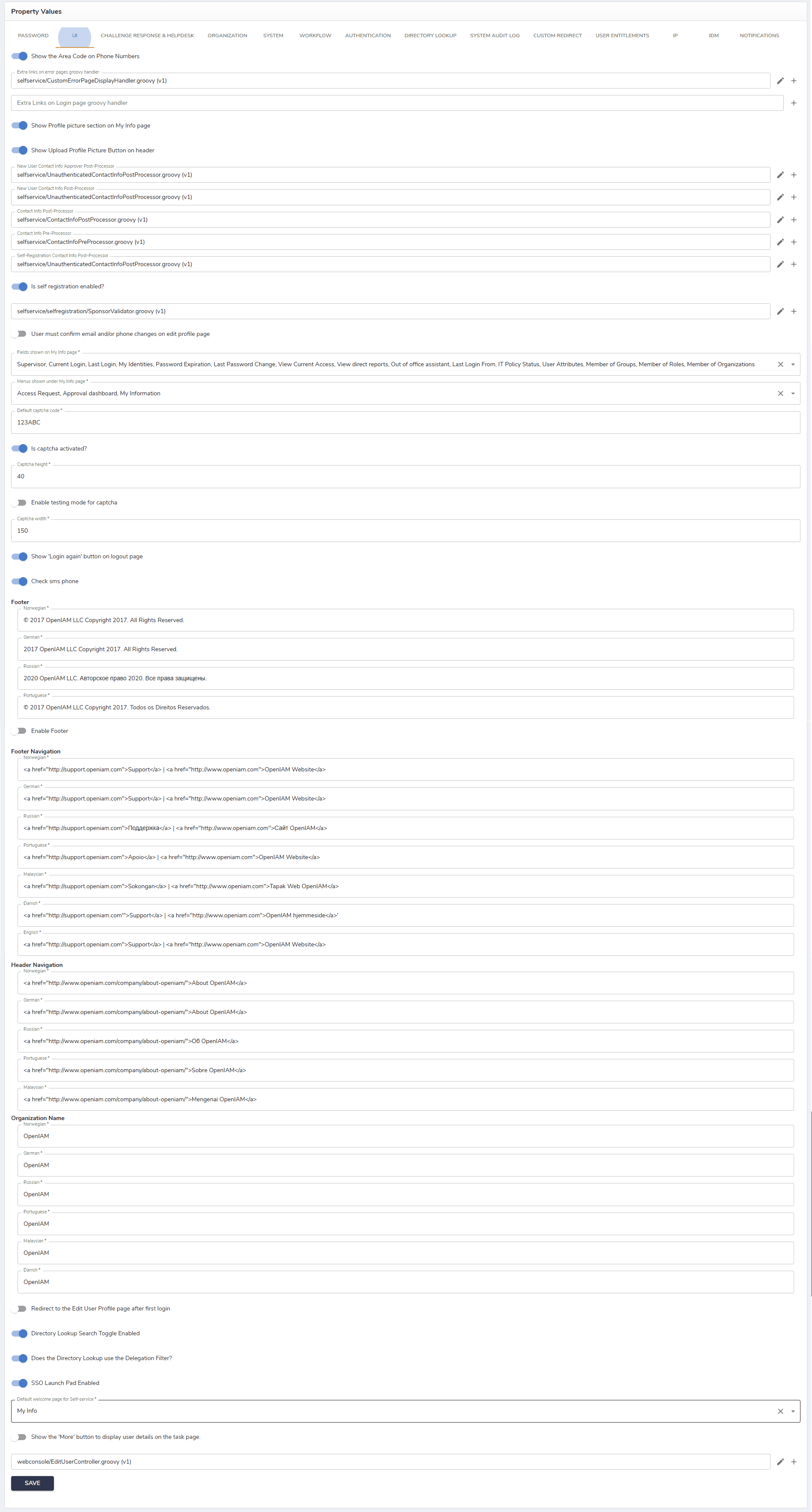 | SelfService default welcome page | The field allows choosing the SelfService default page. |