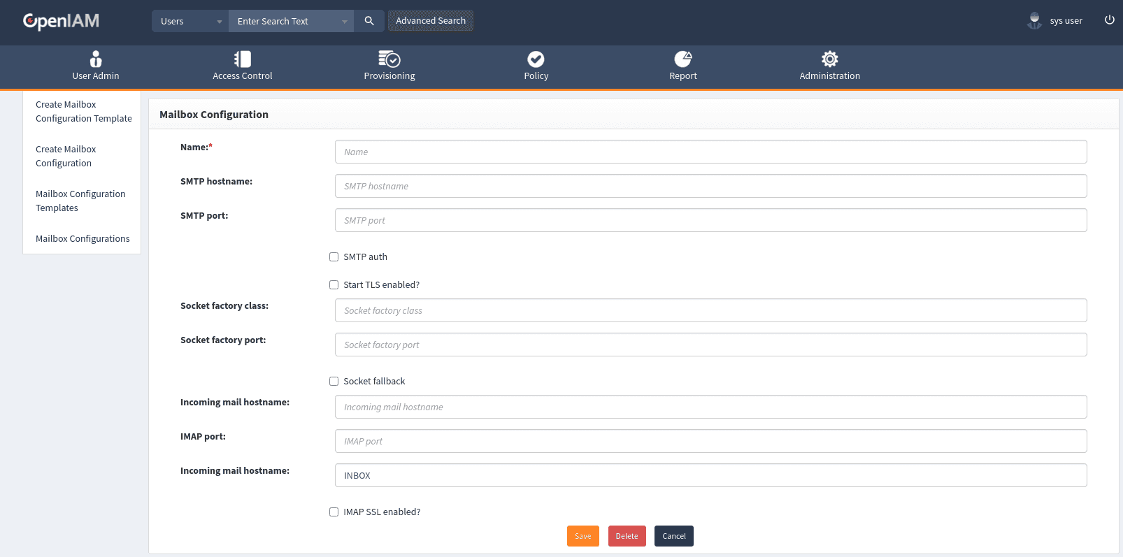 | Inbox folder | Inbox folder name in case OpenIAM is processing in coming emails | |