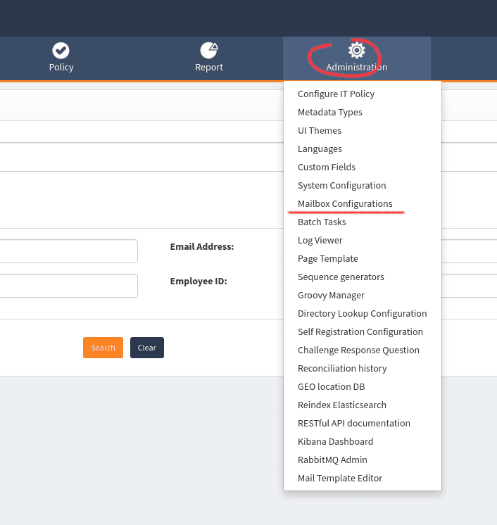 - Login to webconsole and got to Administration -> Mailbox Configurations.