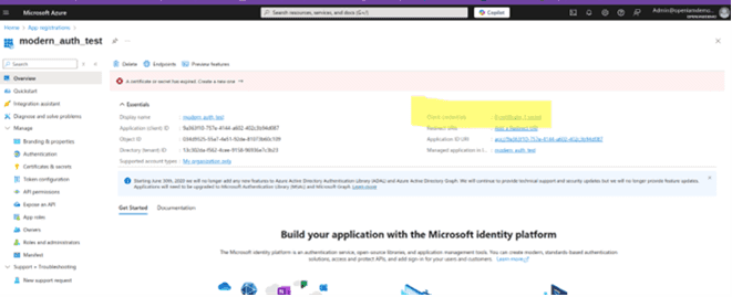 After registration you will need to create a client secret to insert into OpenIAM mailbox configuration further. To create a client secret, follow the steps below.