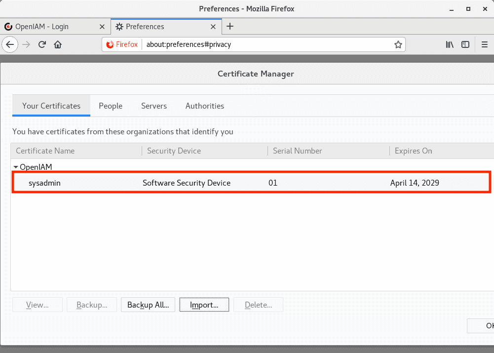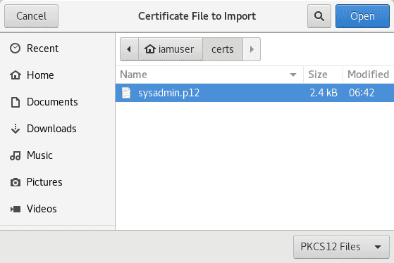 Install user1.p12 into Your Certificates.