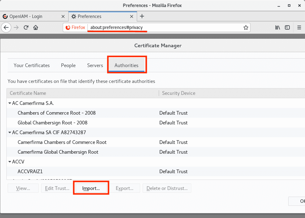 Import ca.crt into Authorities.