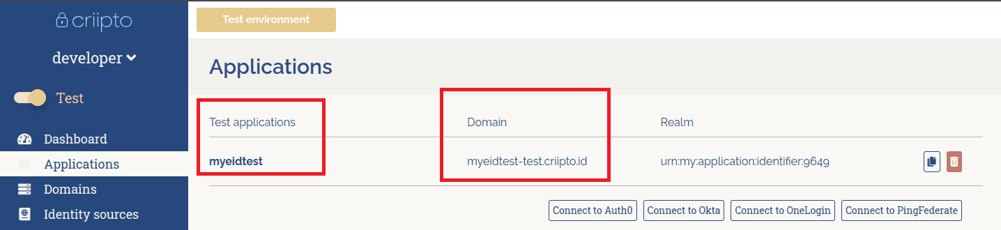 - Create an application and domain on the Criipto dashboard as shown below: