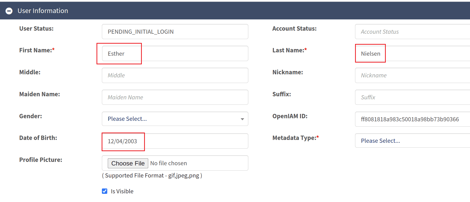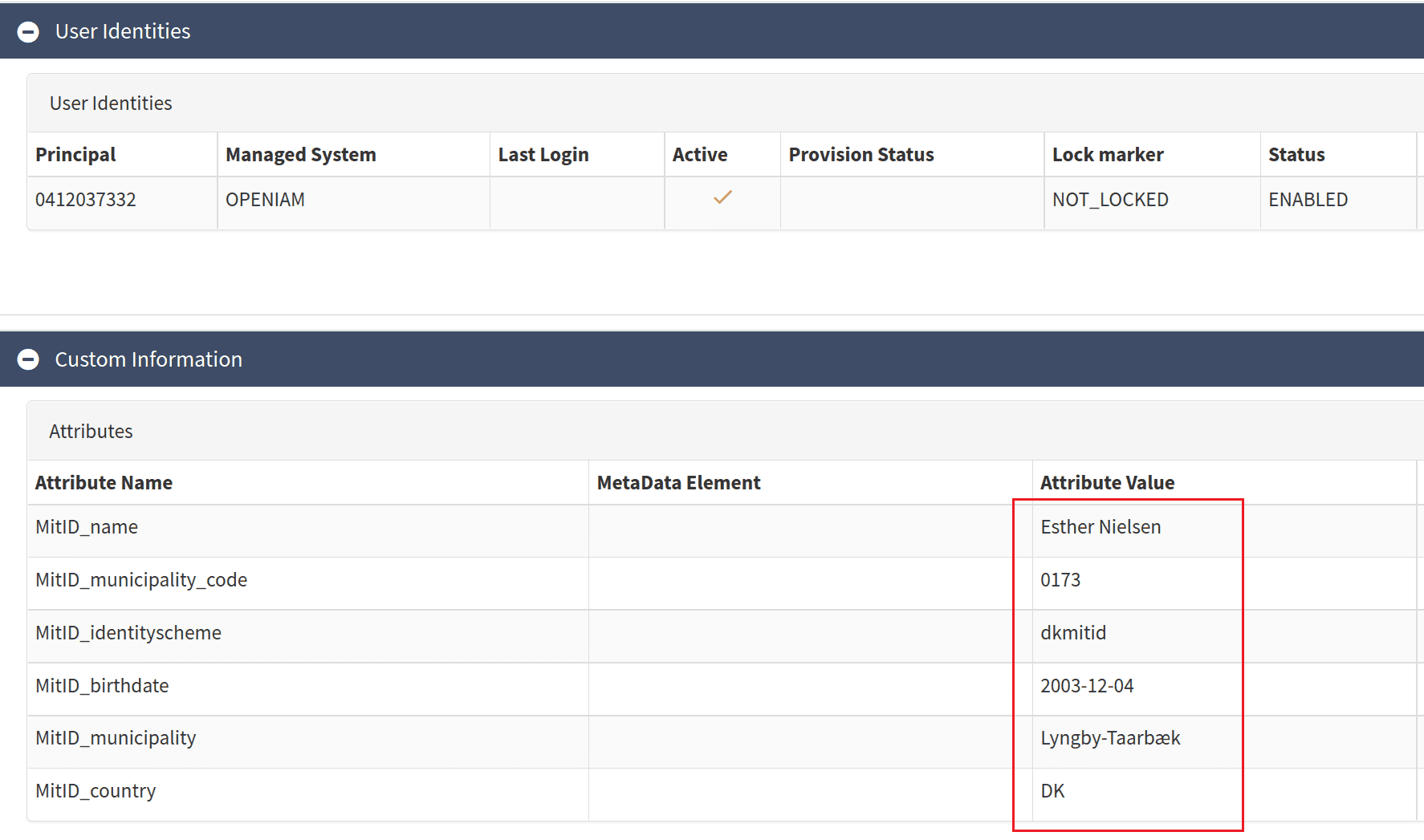 User data saved in OpenIAM: