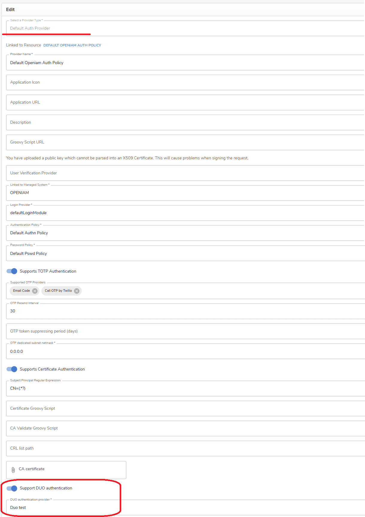 If you need to use Duo multi-factor authentication (MFA), single sign-on (SSO), or the Duo authenticator app for authentication in OpenIAM, follow the steps below to configure it.
