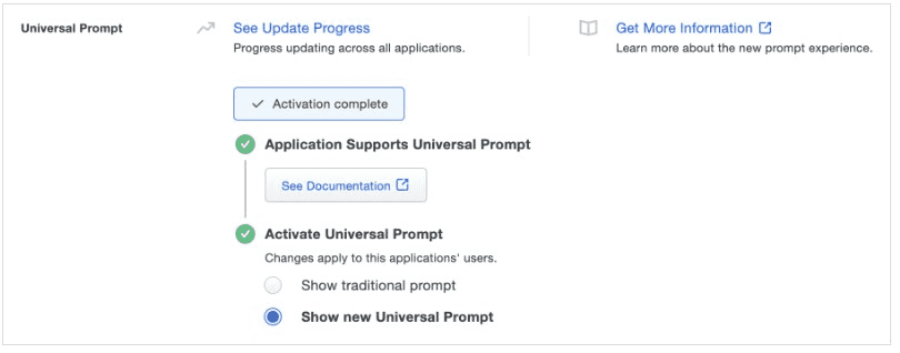 - Activate Universal Prompt for your Web SDK 2FA entry.