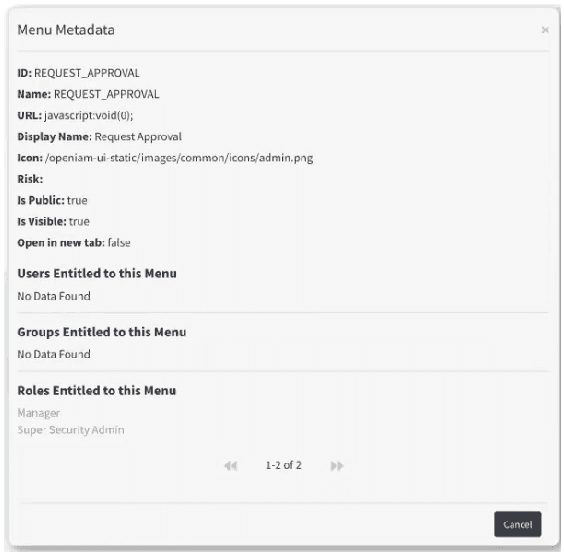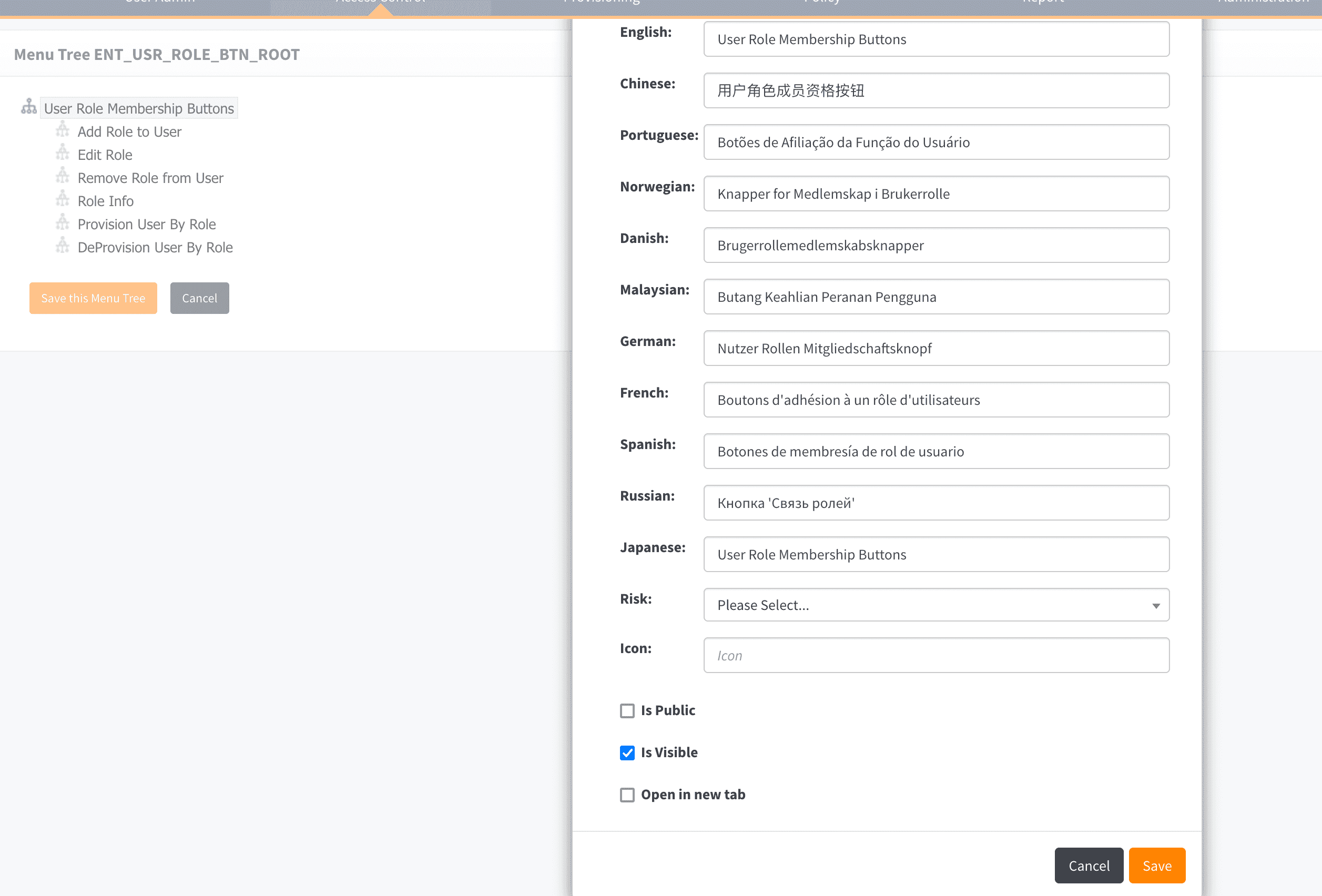 | Is Public | Public indicates that a menu is accessible regardless of entitlement. |