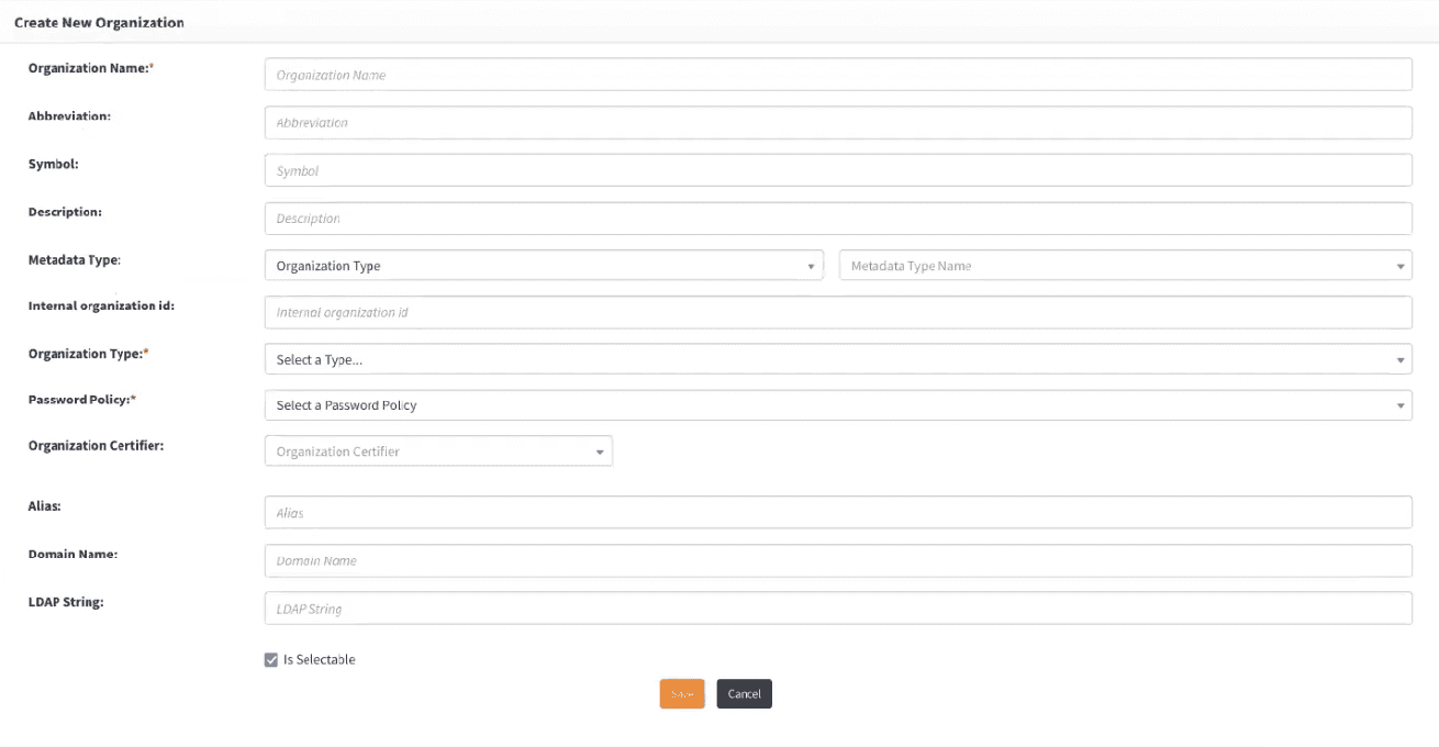 | Organization Name | The official name of the organization in OpenIAM. |