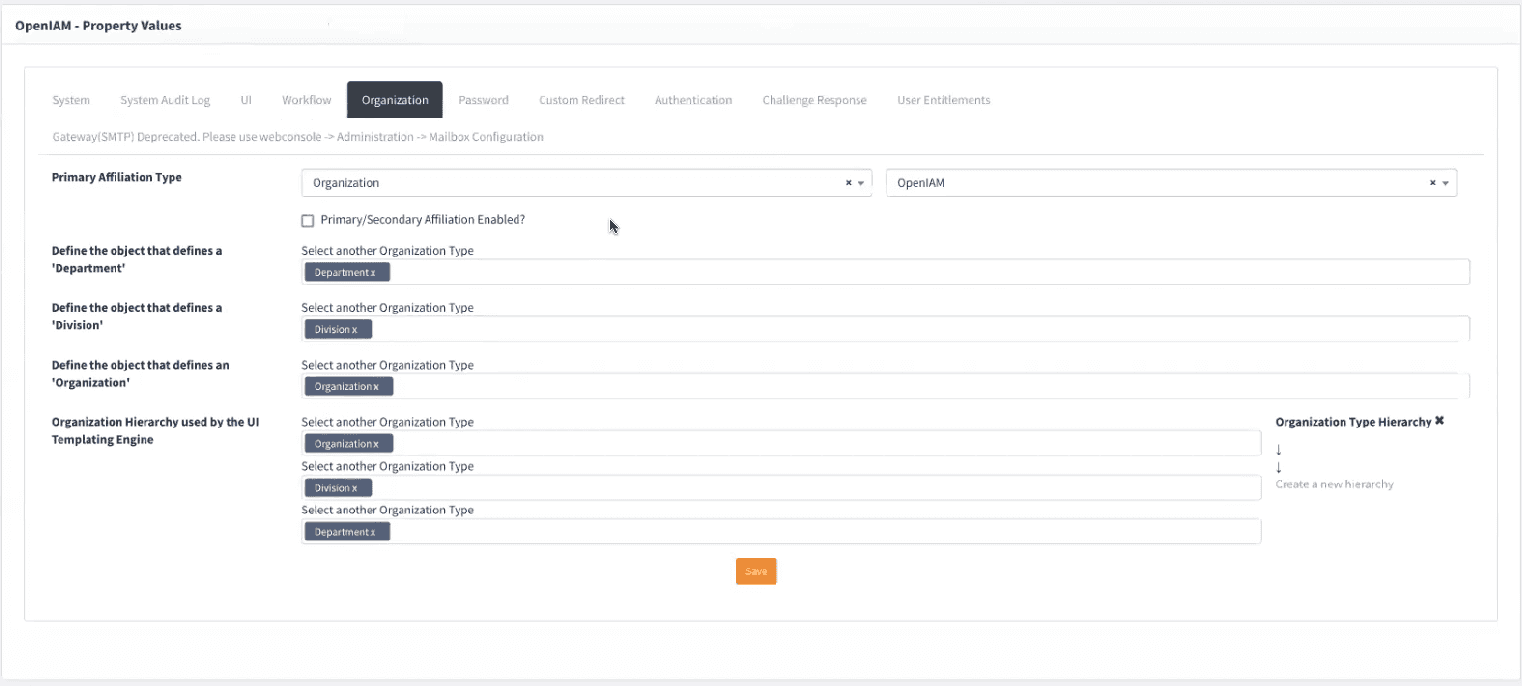 By default, OpenIAM follows a three-tier hierarchy: Organization > Division > Department