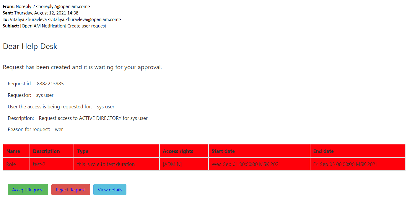 CREATE_USER_REQUEST | Notifies the approver of a pending request. |