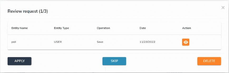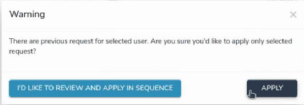 Here, clicking Apply will automatically apply the selected request whereas clicking I'd like to review and apply in sequence will lead you to the view of all the request by the user in sequence. Here, you can look through the requests and apply or skip them by clicking Apply or Skip respectively. Click Delete in case you want to remove the request.