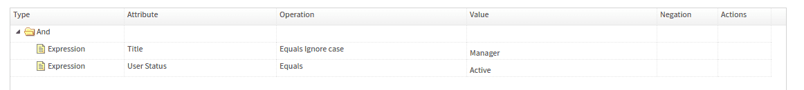 Expression. Add an expression to be evaluated. Negation will reverse the expression result if set to true. - Add