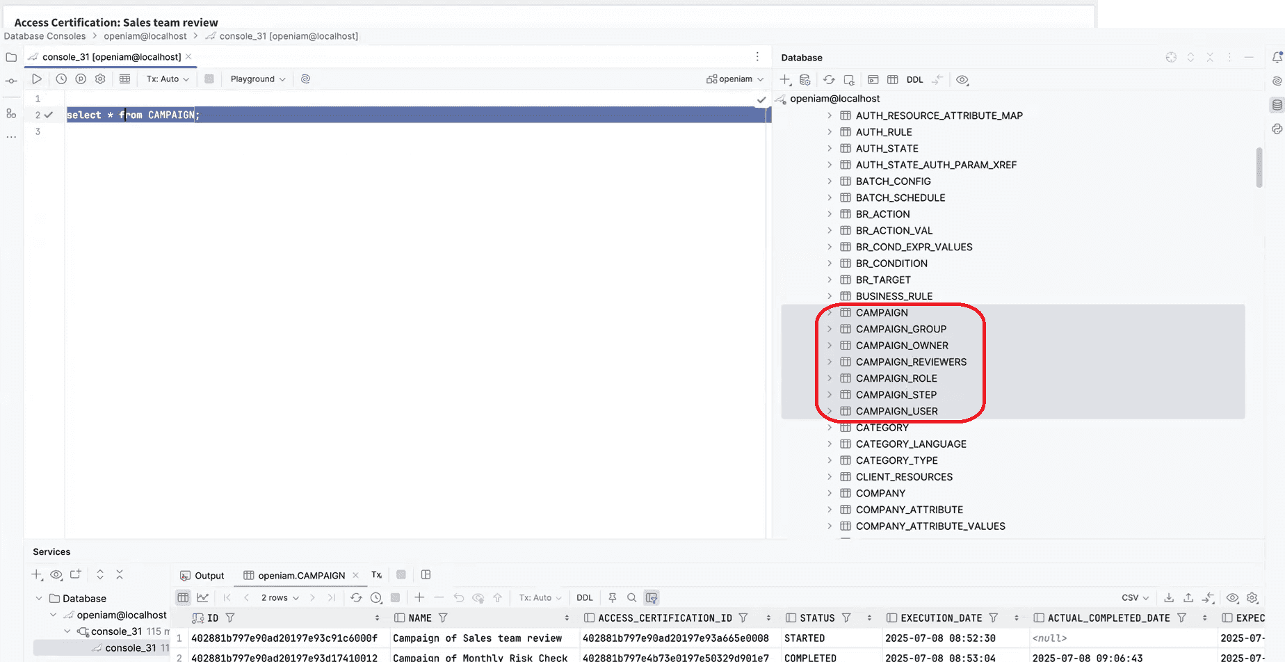 Starting from version 4.2.2 of OpenIAM, a campaign is no longer virtual. A set of tables in the database now represents campaign data. This change enables better reporting, more flexible searches, the ability to compare results across campaigns, and greater freedom in manipulating the data—opening up a wide range of possibilities for users.