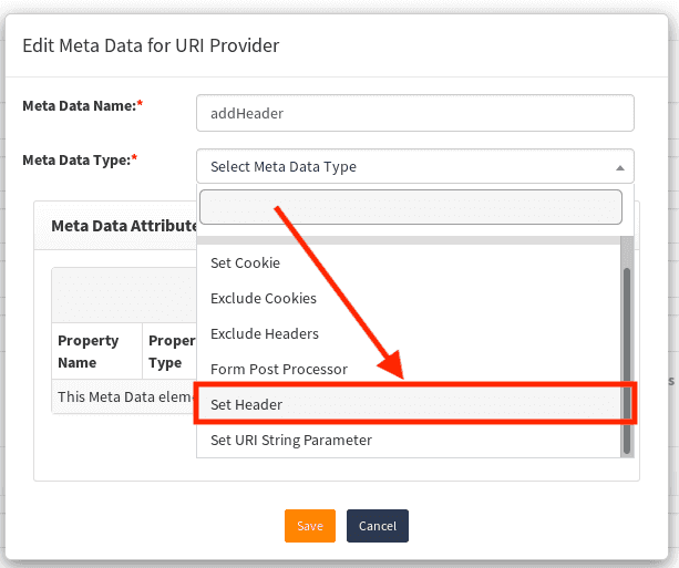 Meta Data Type. For headers it should beSet Header, for cookies:Set Cookie