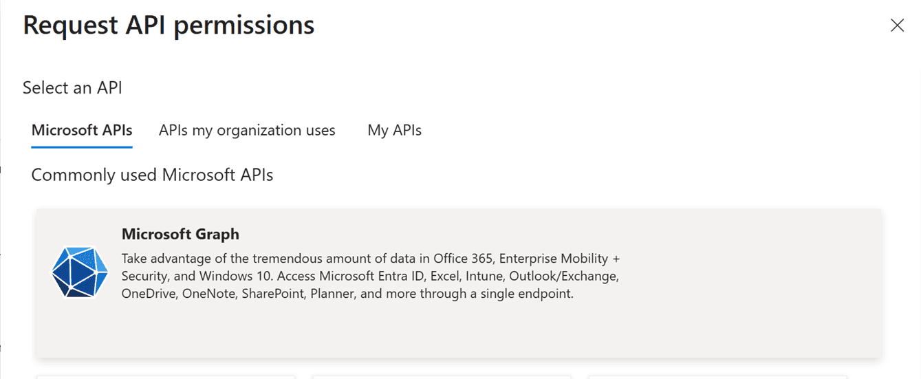 - Go to the API permissions section. Add the
