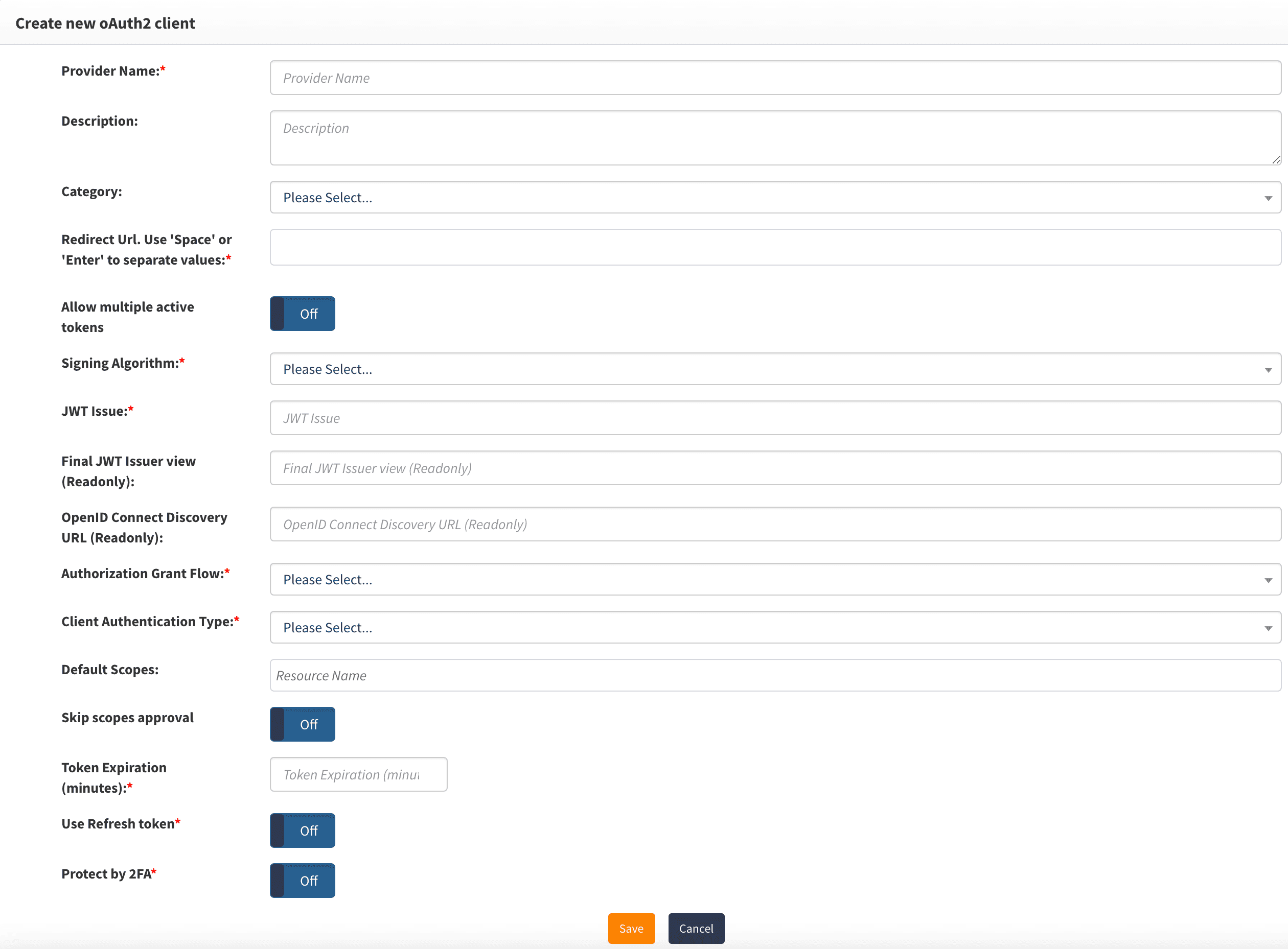 - Select oAuth Client from the Select a Provider Type drop down as shown below.