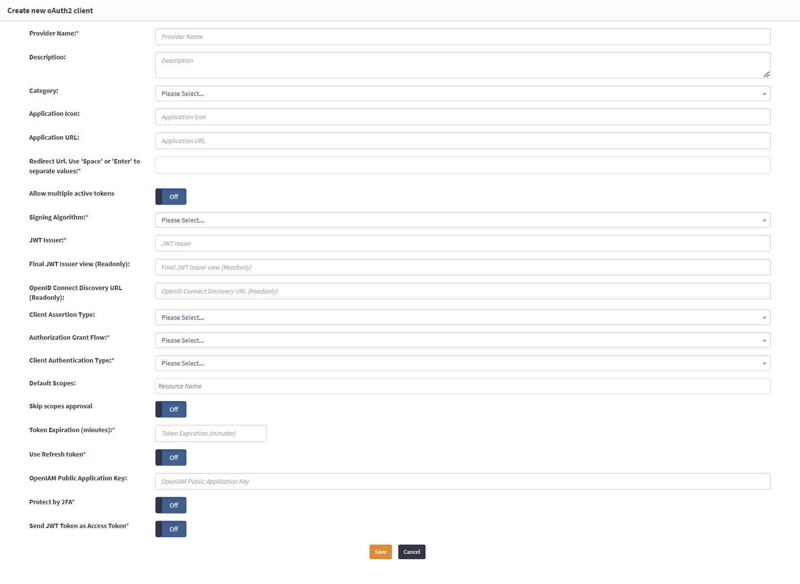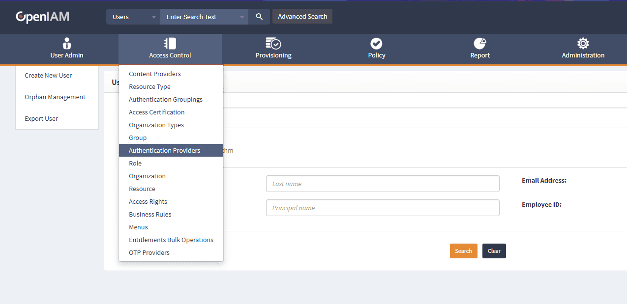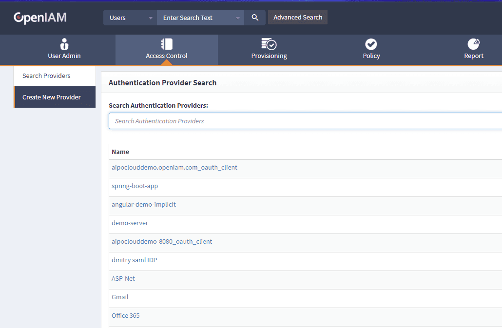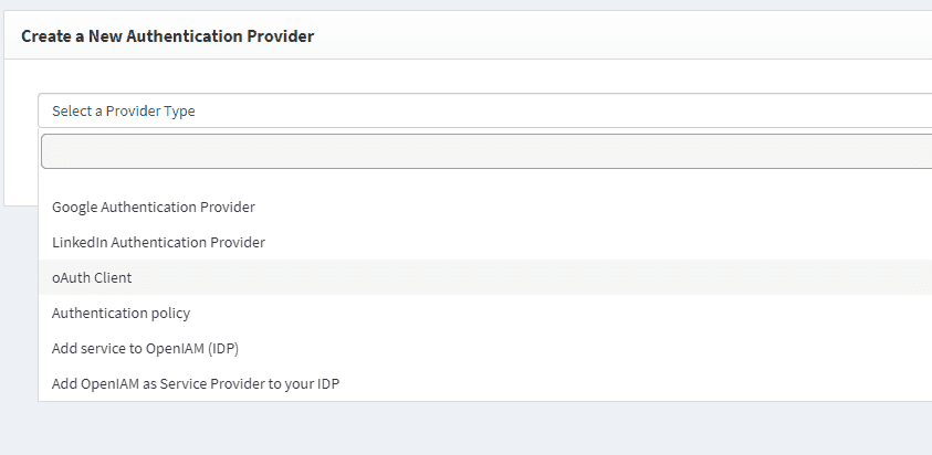 The OpenIAM API is secured using oAuth and in order to be able to interact with the API, you will need to set it up. However, the first step to do it is creating a new Authentication provider in OpenIAM.