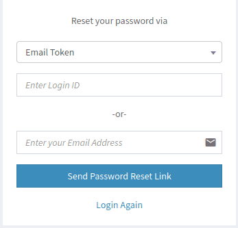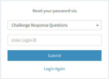 Select your preferred option from the dropdown and provide your login ID in the textbox underneath. Next, click Submit. If you choose not to continue with the Forgot Password process, click Login Again to be taken back to the initial login screen.