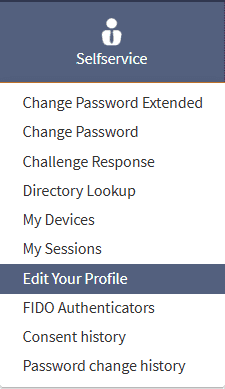 From the top-menu of the SelfService portal, click SelfService. From the dropdown menu, choose Edit Your Profile. Alternately, you can click on your name in the upper right-hand corner of the portal and choose Edit Profile.